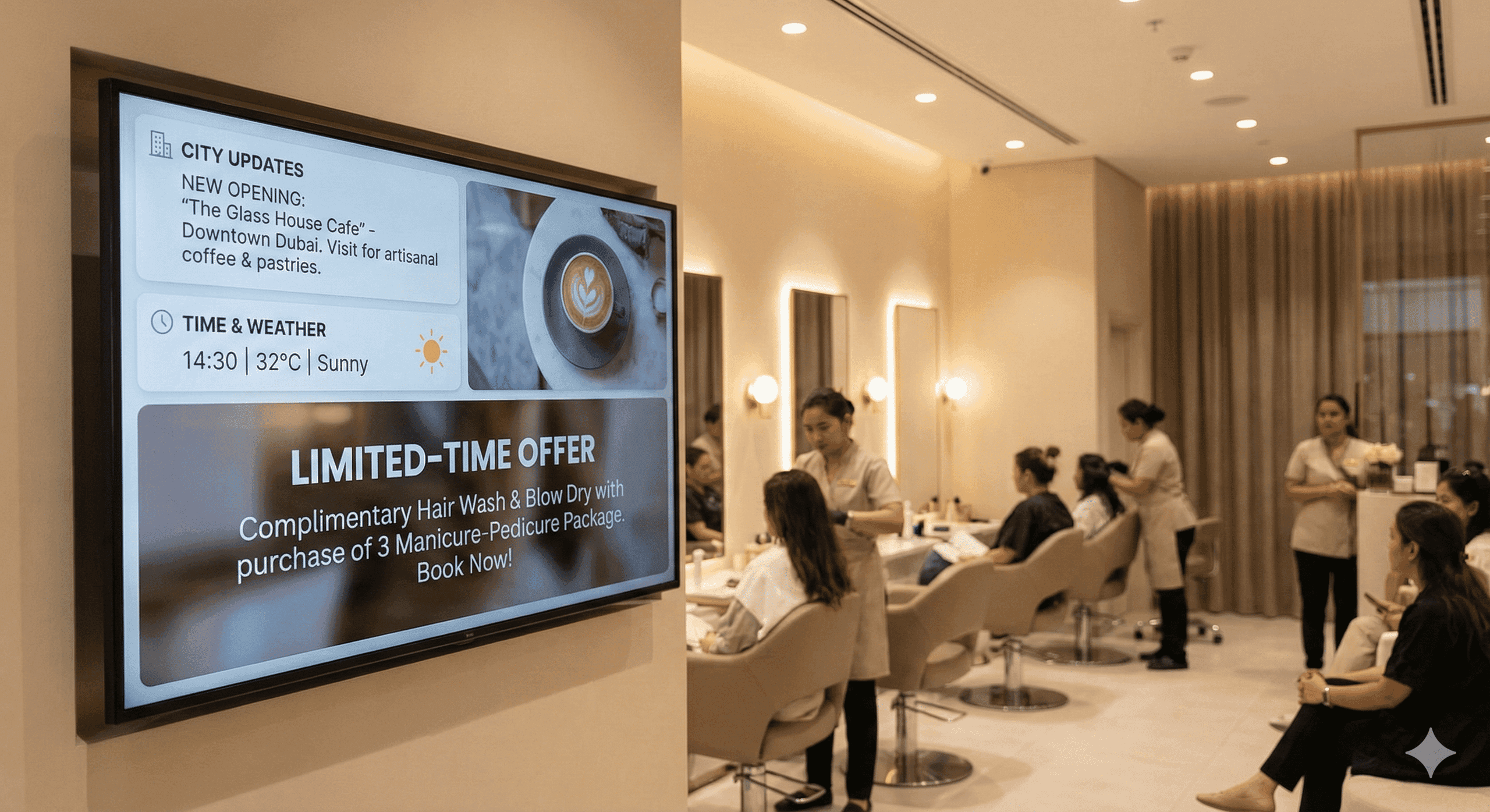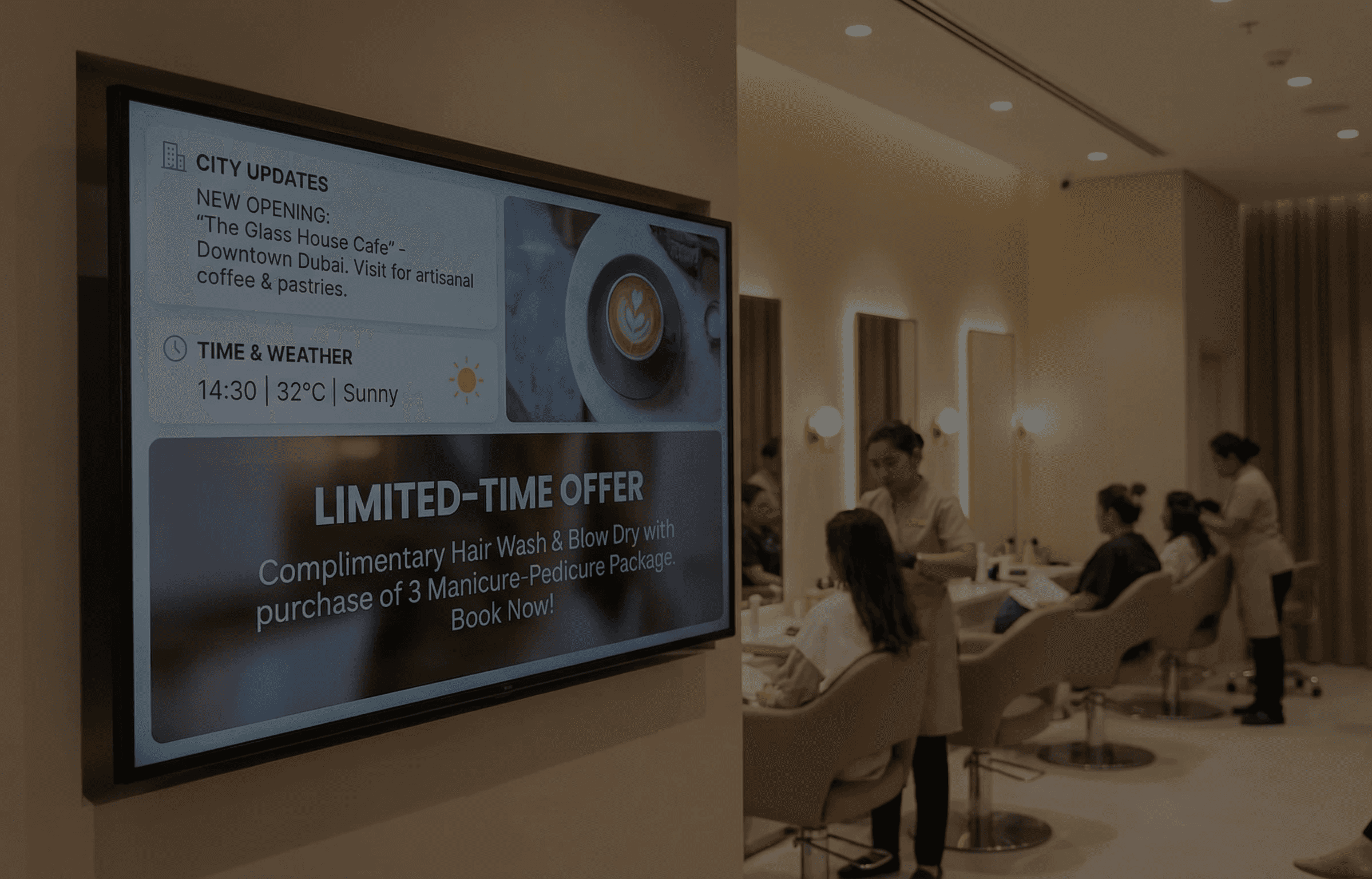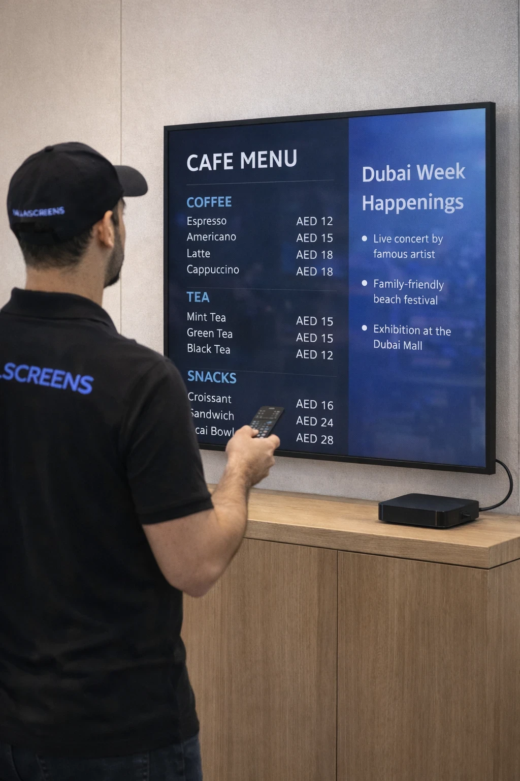 YallaScreens is a UAE-based screen management company working with cafes, salons, retail outlets, and exchange houses across the country.