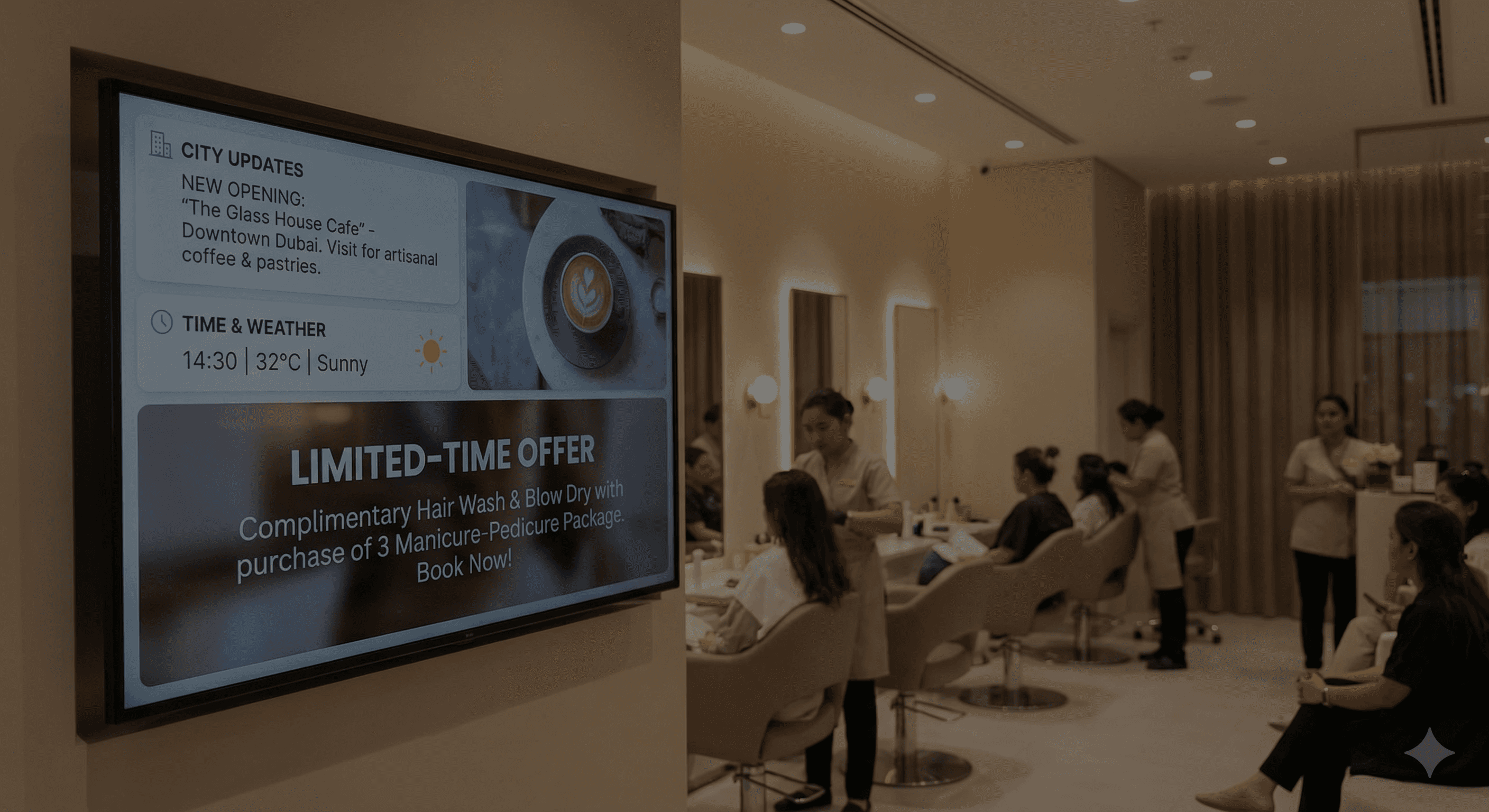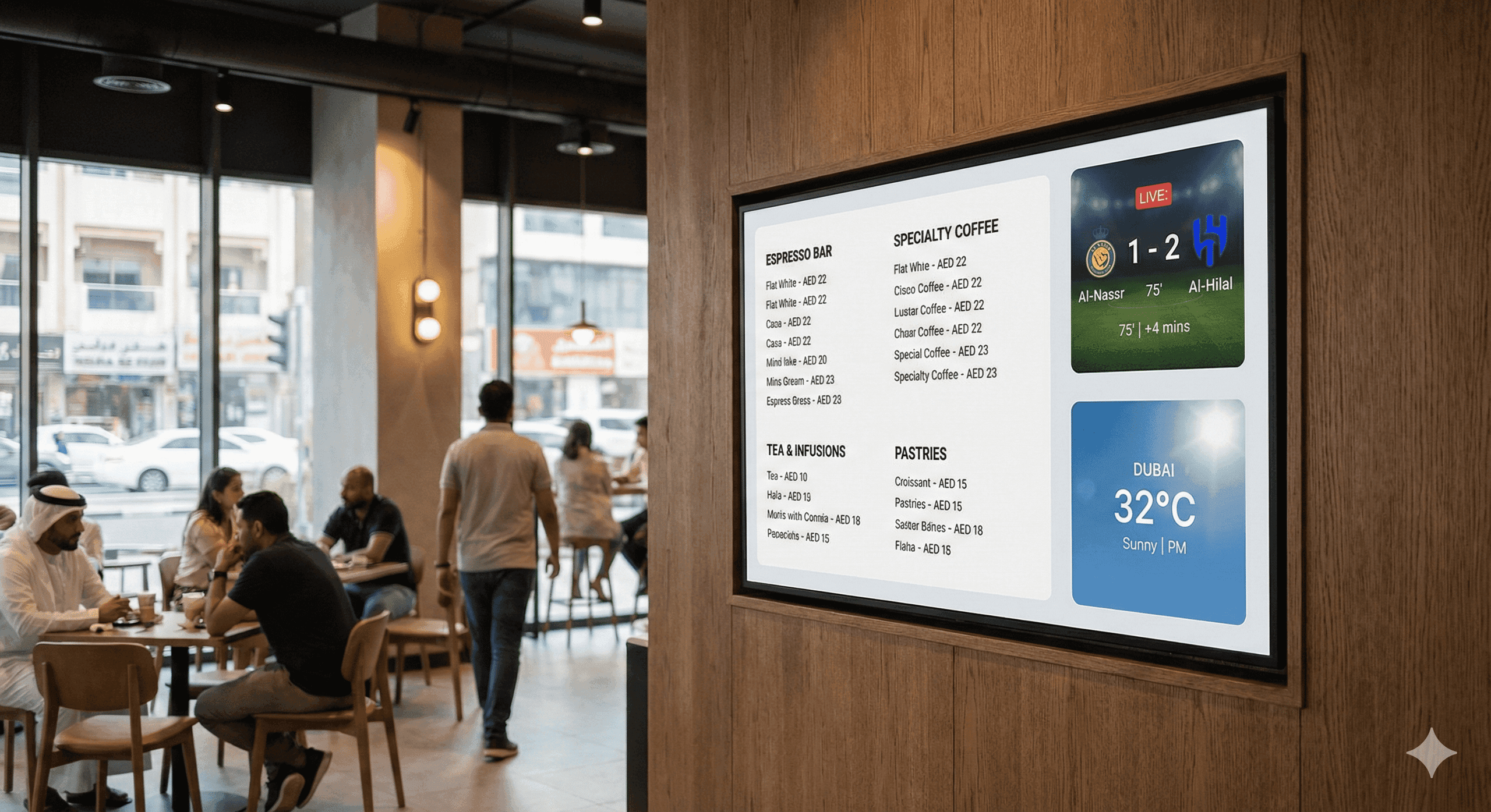 Screens are the most visible surface in your outlet. When managed well, they become the easist way to talk to your customers- showing today's offers, updating your menu, running seasonal promotions, keeping information current. All without your staff doing anything.
